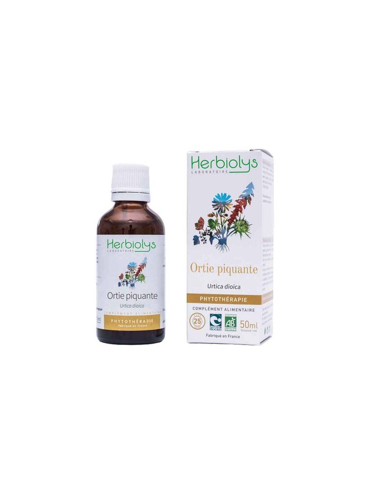 Alcool de grain bio (sans gluten), Eau de source peu minéralisée, Ortie piquante fraîche bio 3% (Urtica dioica).